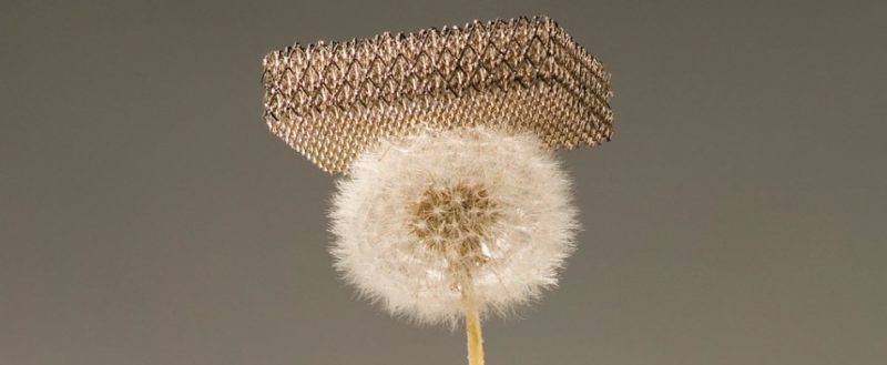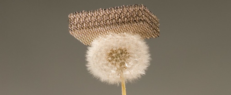 Преди няколко години за производителя на авиационна техника Боинг беше създаден най-лекият метал в света. Сега за първи път можем да го видим и ние. Нарича се микрорешетка и е 100 пъти по-лек от стиропор, но има здравината на метал, което означава, че ще намери доста широко приложение – не само да се балансира върху глухарче.