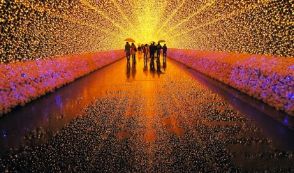 Японците знаят как да впечатлят света. Японската ботаническа градини Nabana no Sato в Кувана, северната част на префектура Мие, намираща се на 350km югозападно от Токио, е сцена на един от най-известните и посещавани в света зимни светлинни фестивали. Между април и октомври всяка година мястото е красив парк с многоцветни хортензии, ириси и лалета, но в периода между ноември и март водеща роля поемат повече от 8 милиона LED светлини, захранвани фотоволтаично. Те изграждат вълнуващи цветни килими, лехи, плетове и тунели, които са основната атракция във вечерния зимен пейзаж на града. Посетителите могат да се разходят по пътеките в рамките на парка, да разгледат различните експонати и да се насладят на светлинното шоу, възкресяващо местната природна красота в зимните вечери.